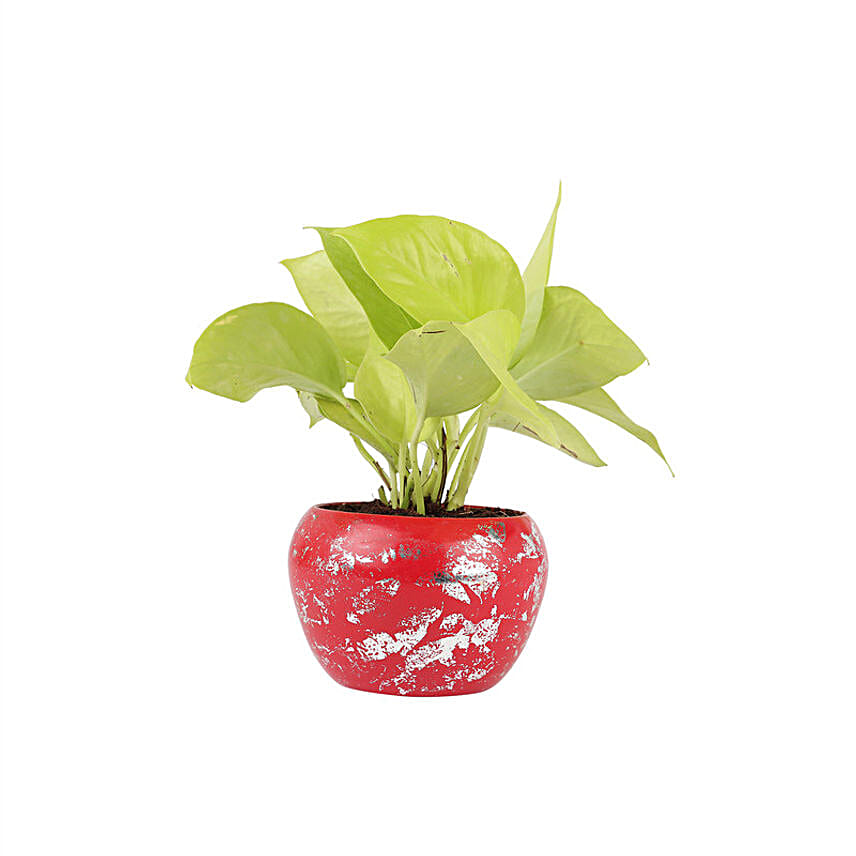 Buy Send Golden Money Plant In Red Metal Pot Online Fnp